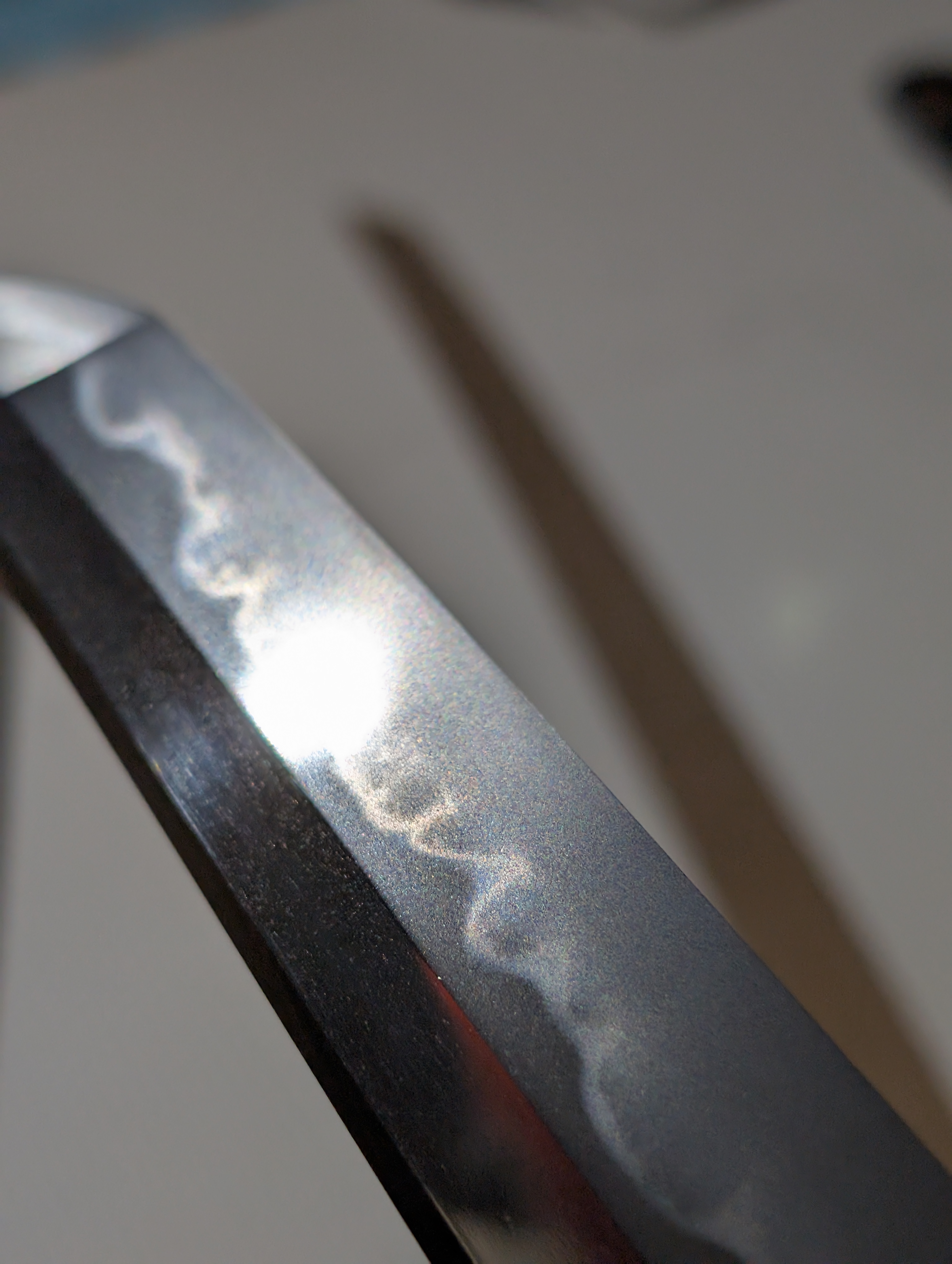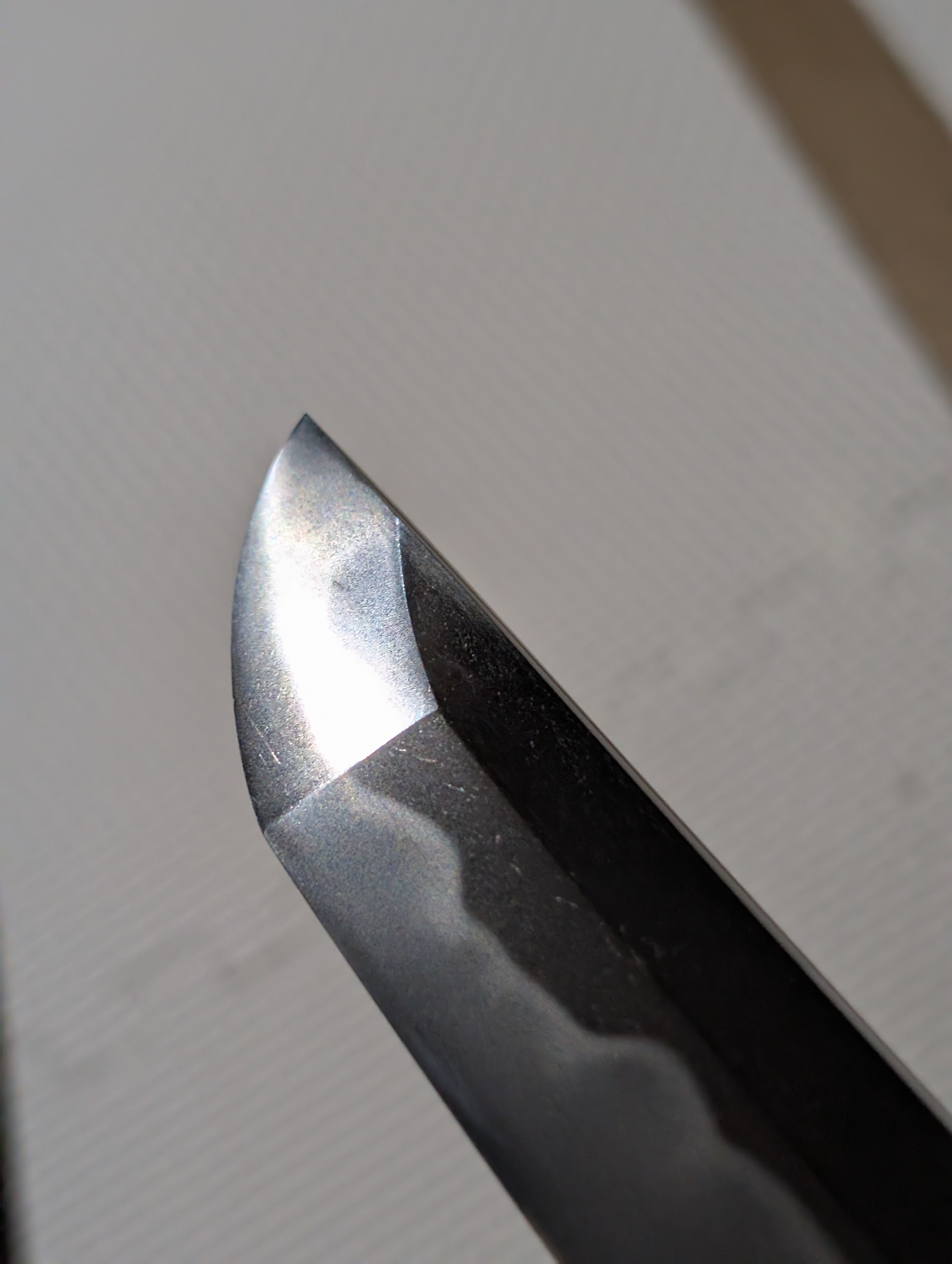 Nagasa: 70.8 cm (shorter than previous swords, as is typical for blades inspired by suriage works) Sori: 0.85 cm (particularly shallow, as is seen in Kanbun Shinto works)